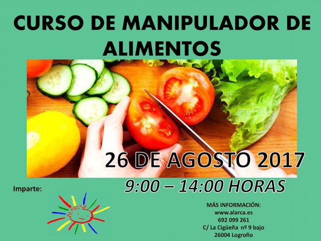 Este mes de agosto apúntate al curso de Manipulador de Alimentos. Se impartirá en el 26 de agosto en Escuela Alarca.