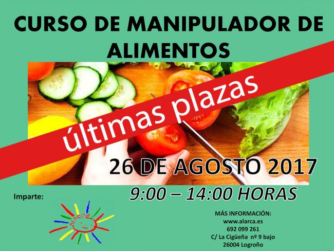 Últimas plazas curso manipulador de alimentos