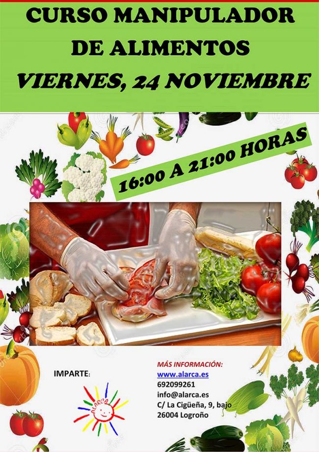 Impartimos el proximo viernes 24 de Noviembre en Alarca un curso de Manupulación de alimentos, no te pierdas la oportunidad de obtener tu título de manipulador.
