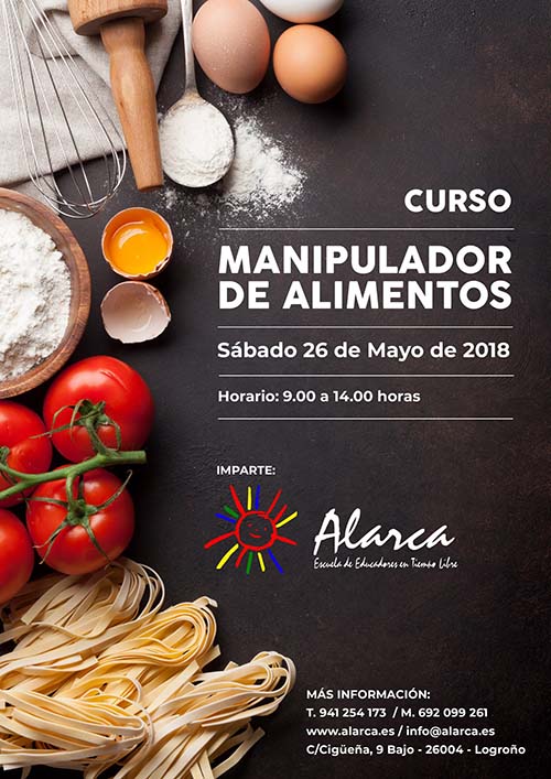 Nuevo curso de MANIPULADOR DE ALIMENTOS en Escuela Alarca el sábado 26 de Mayo de 2018.